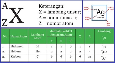 Contohnya, unsur litium memiliki nomor atom 3 dan nomor massa 7, sehingga penulisan lambang unsurnya yaitu :