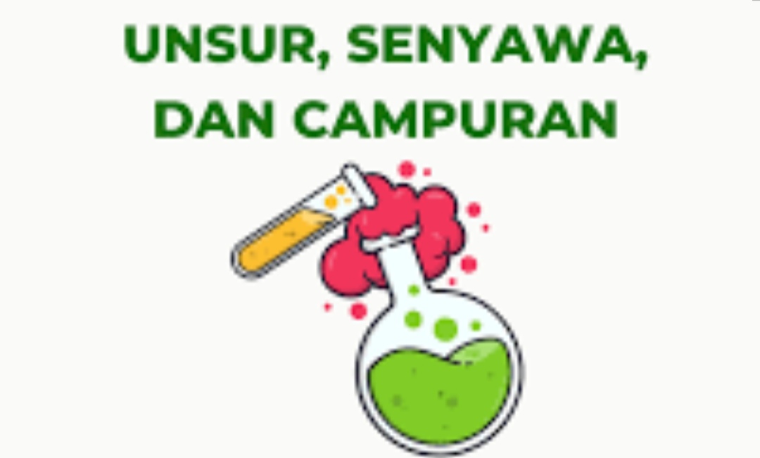 Unsur adalah zat murni paling sederhana (satu jenis atom) yang tidak dapat dibagi lagi. Senyawa adalah zat tunggal hasil gabungan unsur secara kimia dengan perbandingan tetap. Campuran adalah gabungan fisik dua zat atau lebih tanpa reaksi kimia, sehingga sifat aslinya tetap.