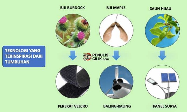 Struktur organ dan jaringan tumbuhan menginspirasi manusia untuk mengembangkan berbagai teknologi seperti panel surya (solar cell), sensor cahaya, lapisan pelindung, pengilap mobil dan alat pemurnian air.
